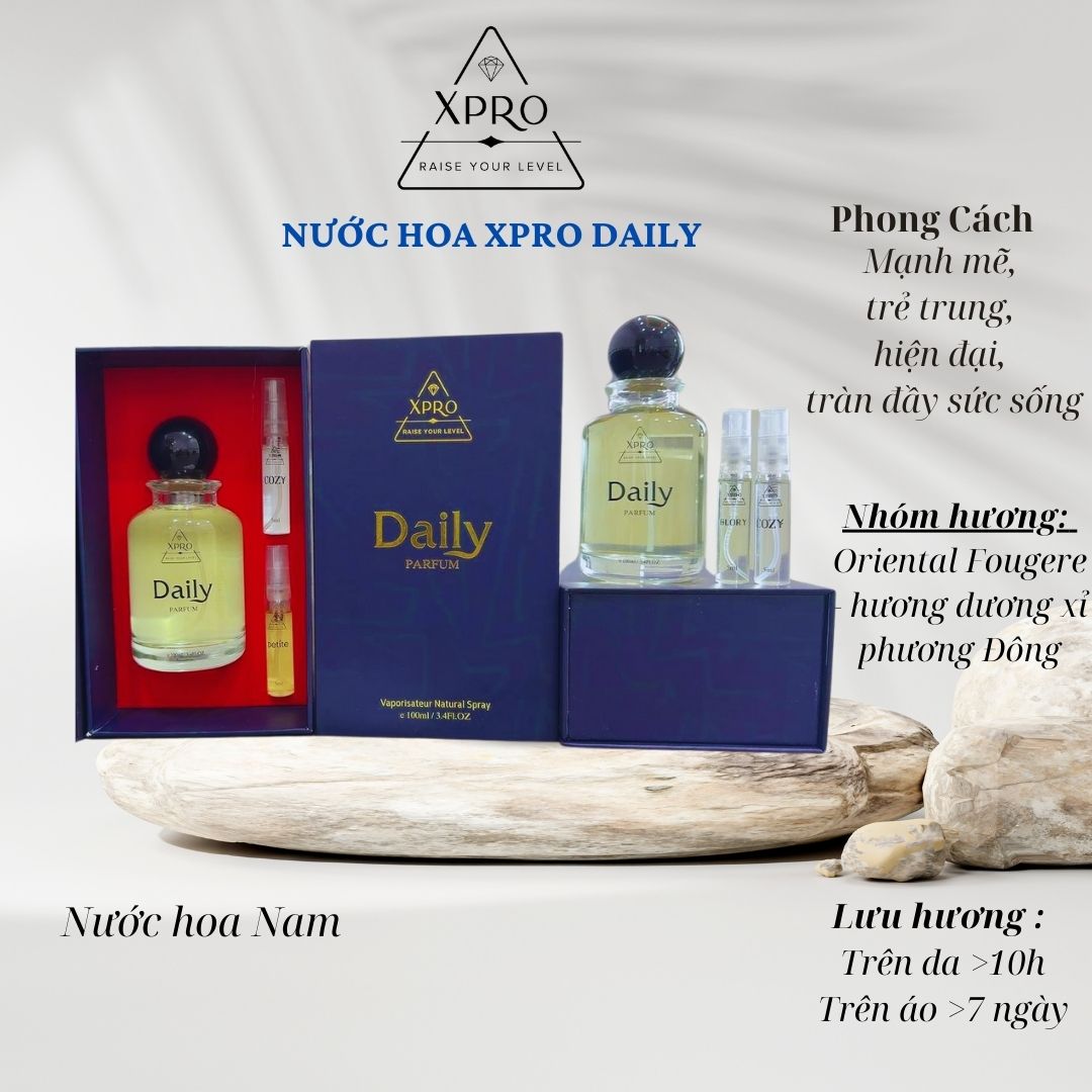 Nước hoa Xpro Daily 100ml là một trong những sản phẩm nước hoa nam được yêu thích nhất của XPRO PERFUME, mang đến hương thơm mạnh mẽ và cuốn hút.